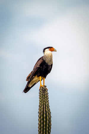 Caracara cheriway crested falcon on cactus in Baja California Mexico