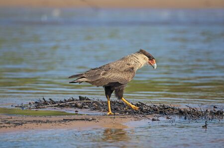 Southern Crested Caracara Patrolling a Sandbar in the Pantanal in Pantanal National Park in Brazil