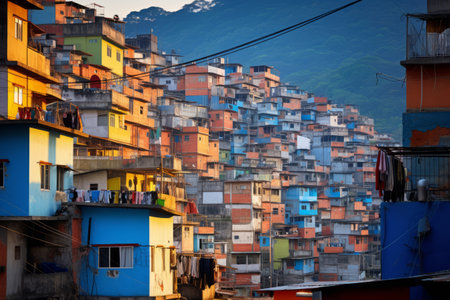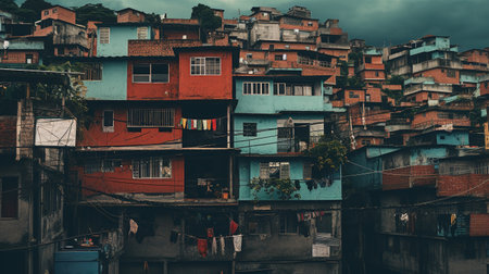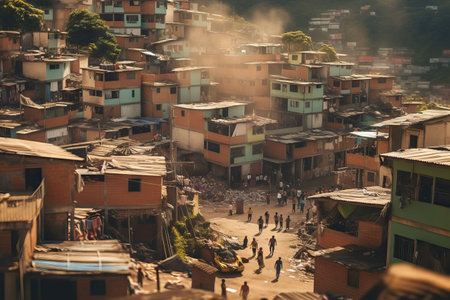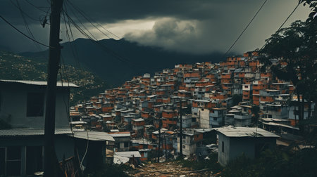 Generative AI, Brazilian favelas community, panoramic view with many houses, urban town poor house buildings