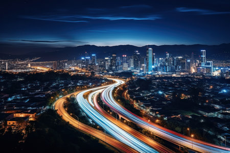 A long exposure photo of a highway at night generate with Ai. High quality photo