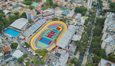 CARACAS, VENEZUELA, MAY 2022: Multisport sports complex Teo Capriles Velodrome. Miniature Tilt-shift effect.