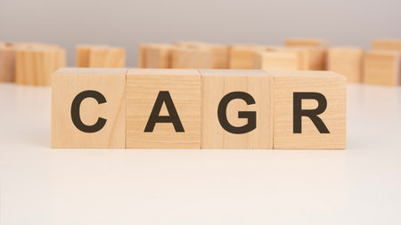 short word english letters with text - CAGR - on a small wooden cubes with white background. copy space concept. selection focus