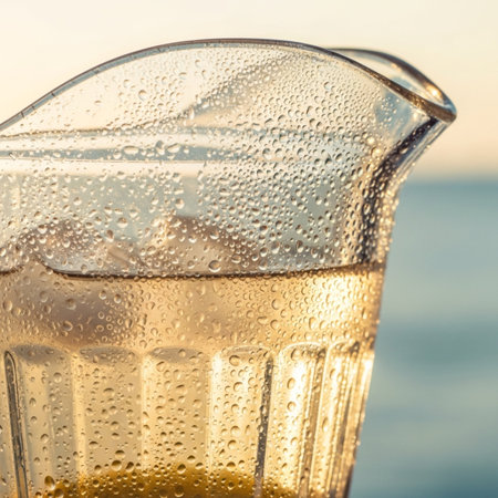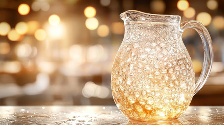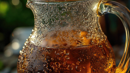 Refreshing Beverage in a Textured Glass Pitcher, Bathed in Warm, Golden Light. Perfect for Summer.