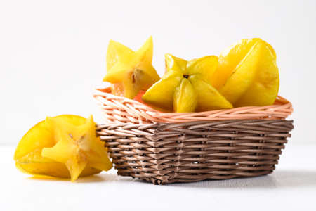 Ripe star fruit or Carambola in basket on white background, Tropical fruit