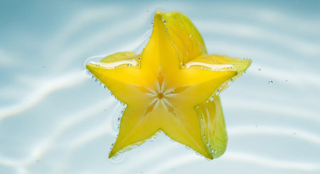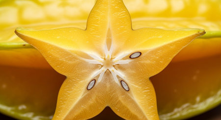 Carambola with star shaped slices and translucent yellow flesh fanned Food and culinary concept