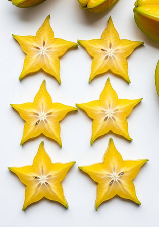 Sliced star fruit, close-up, elevated view