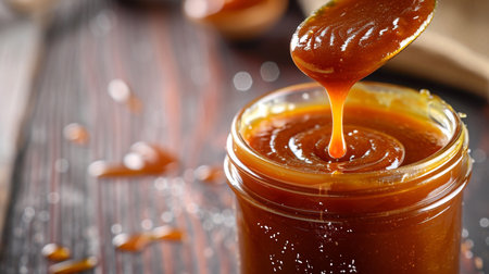 Generative AI : homemade salted caramel sauce in glass