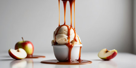 AI Generated. Caramel apple ice cream with apple slices and caramel drizzle