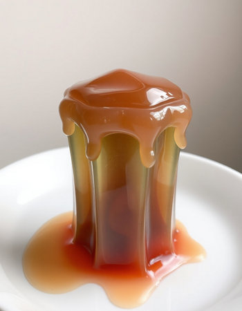 jelly pudding with caramel on a white plate. shallow depth of field