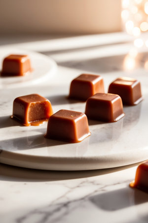 AI Generated. Exquisite Handcrafted Caramel Candies Glistening in Natural Light