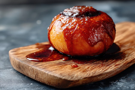 Closeup of delicious gourmet baked scallop with caramel sauce
