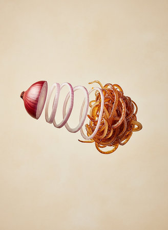caramelizing cooking onion isolated
