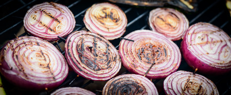 Grilling fresh and tasty Onions on barbecue