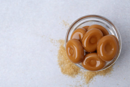 Sesame Seed Caramel Candies, Homemade Chewy Toffees in a Jar, copy space for your text