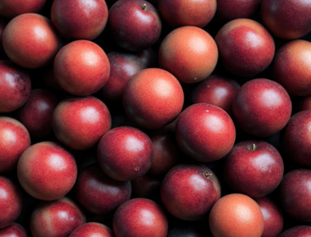 Freshly Harvested Red Plums Gathered Together in a Sunny Orchard During Late Summer