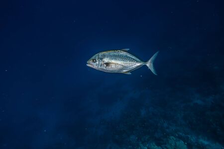 Sea fish in blue light. Underwater harmony.
