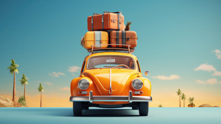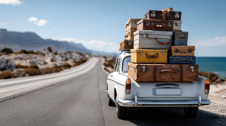 A car is packed with luggage, signaling the beginning of a seaside vacation, generative AI illustration