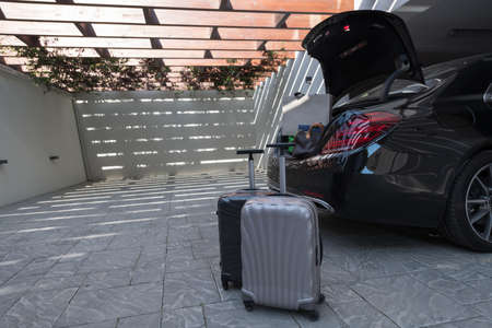 Suitcases and bags in trunk of car ready to depart for holidays