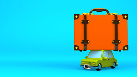 Car with travel luggage on blue background.3DCG illustration.