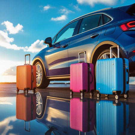 Explore the anticipation of new adventures with suitcases and bags neatly arranged in the open trunk of a car. This image encapsulates the essence of travel and the excitement of embarking on a journey to new destinations.