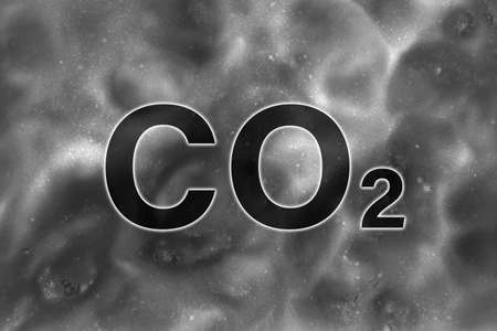 CO2 inscription on background of smog or smoke. Concept - reduction of carbon dioxide emissions into the atmosphere.