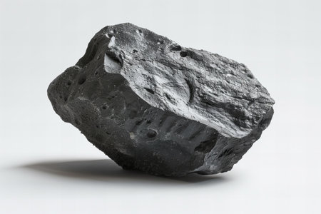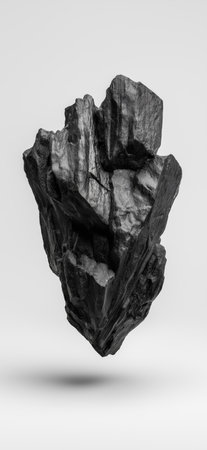 Jagged meteorite rocks with realistic textures and shadows, suspended against a white minimalistic background