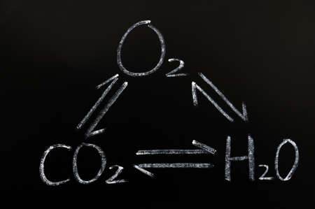 Interaction of oxygen,carbon dioxide and water on a blackboard