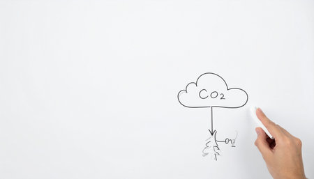 An educator's hand sketches a diagram on a clean whiteboard, visually explaining the concept of carbon capture technology.