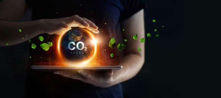 Co2, reduction of carbon emissions, carbon neutral concept. Carbon Footprint, Low carbon, Net zero greenhouse gas emissions target. sustainable development. and green business from renewable energy.
