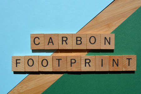 Carbon Footprint, words in wooden alphabet letters isolated on colorful background