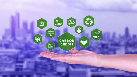 Carbon Credit Concept - Emissions Offset and Climate Change Mitigation. Reducing Carbon Footprint Through Offsets