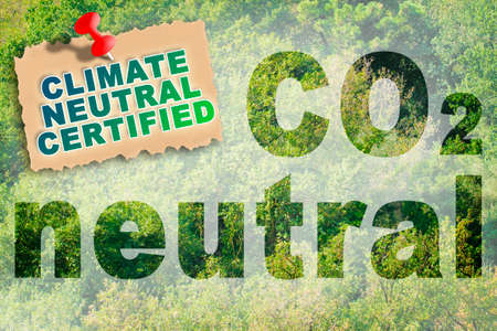 CO2 Neutral concept against a forest backgound with label and Climate Neutral Certified text
