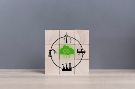 Carbon neutrality industry renewable energy sustainability wooden blocks