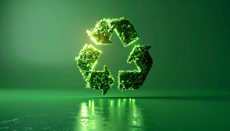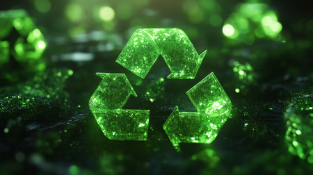 Glowing 3D recycling symbol with vibrant green elements, emphasizing eco-friendly practices.