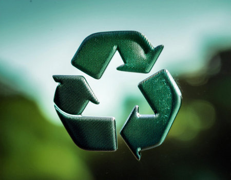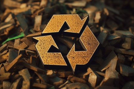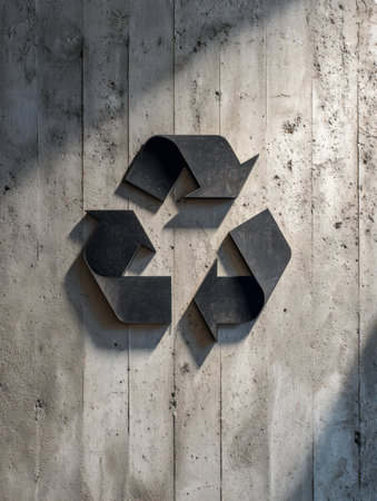 Close up of a recycling symbol, highlighting environmental conservation, sustainability, and waste management.