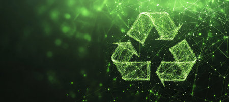 Abstract Recycling Symbol Eco-Friendly Concept with Glowing Green Lines, Dots, and Triangles