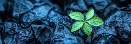 Budding Life Emerging from Textured Rubbish Heap, Symbolizing Hope and Environmental Resilience