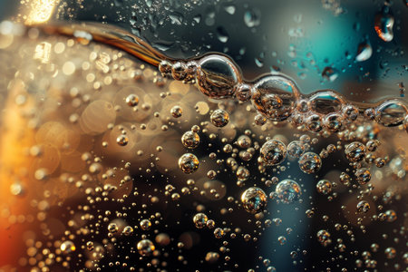 A mesmerizing close-up of bubbles rising in a liquid, showcasing the beauty of effervescence and the intricate textures created by the gas-liquid interaction.
