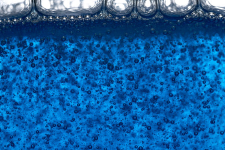 Close-up of blue transparent gel with Bubbles. Bubble abstract water gel texture. macro surface background display for your products and artwork design.
