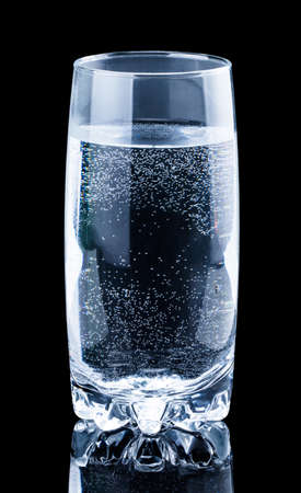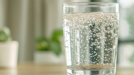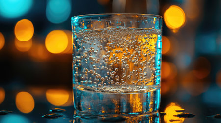 Refreshing glass of sparkling water with bubbles