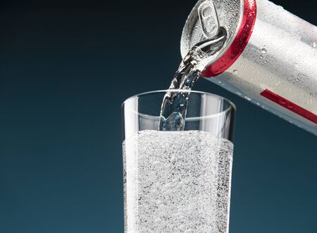 Pouring water into a glass on a dark blue background