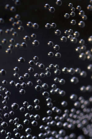 Macro photography of clear condensation water droplets, beautifully capturing their intricate detail and light reflections.