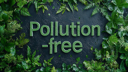 Text reading 'Pollution-free' surrounded by vibrant green leaves, symbolizing eco-friendly and sustainable living. Ideal image for promoting environmental awareness and conservation efforts.