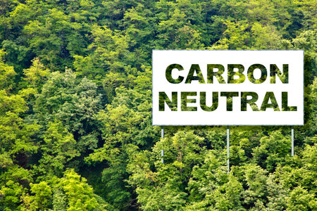 CO2 Carbon Neutral concept against an advertising billboard immersed in nature with forest in the background