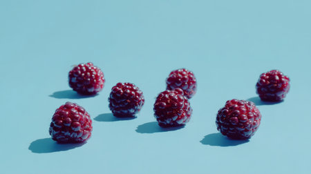 A vibrant arrangement of fresh berries showcasing rich colors against a soft blue background. Perfect for culinary inspiration and healthy lifestyle promotion.