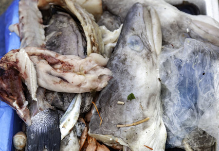 Fish waste at retail shop for disposal at day from different angle