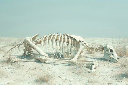 A camel skeleton decomposing in the desert