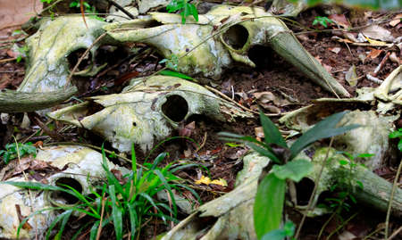 The skulls of dead cows in the forest. China