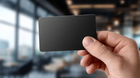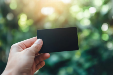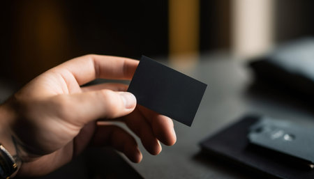 Elegant Black Business Card Held in Hand, Showcasing Modern Minimalist Design for Professionals