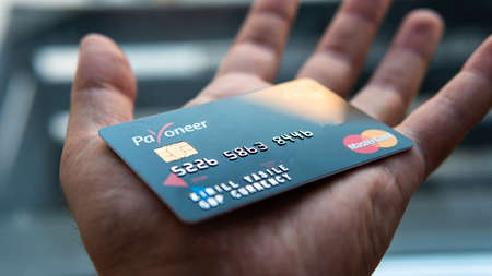 Aschheim, Germany -27 June 2020 : Blocking Payoneer cards, Wirecar company bankruptcy. Issuing Cards from Wirecard Card Solutions